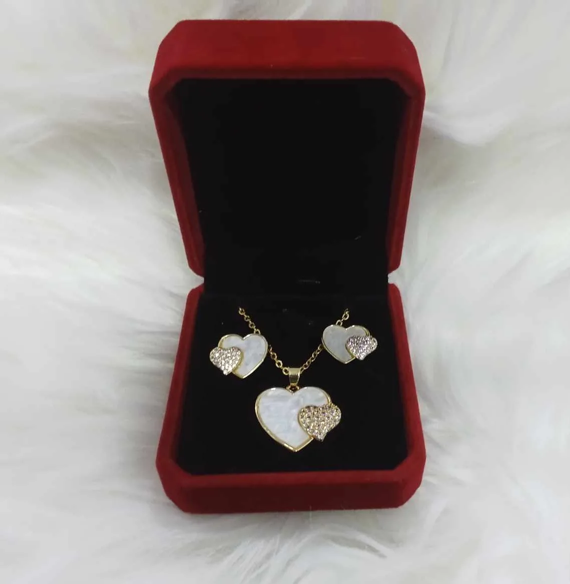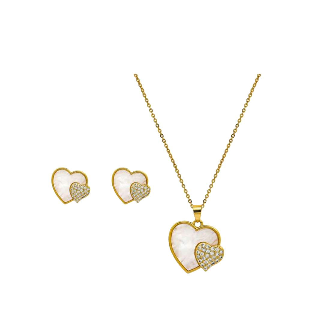 Be the first to review “White Mother Pearl Big Heart Necklace And With a Zirconia Small Heart Design” Cancel reply