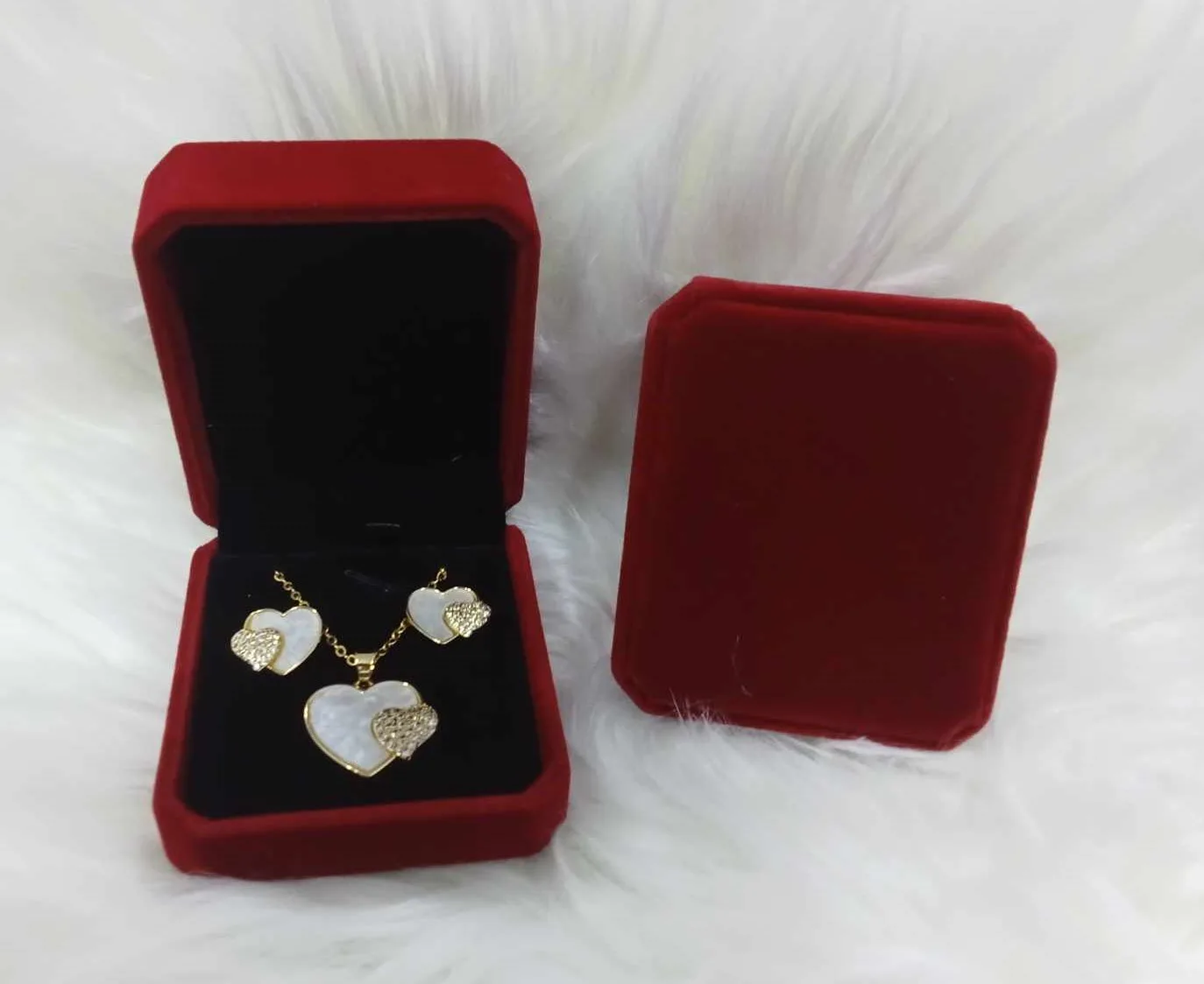 - A gold plated with White Mother Pearl Big Heart Necklace and with a Zirconia small heart design